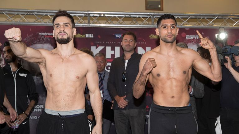 Khan was bang on the required weight at 10st 10lbs, while Lo Greco was slightly lighter at 10st 9lbs 5oz.