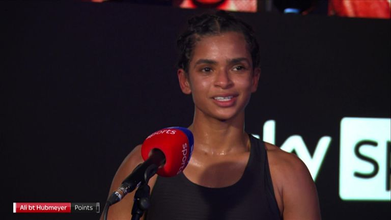 Searching for a stoppage, Ali forced Hubmeyer to the ropes with a fiery cluster of shots in the fifth, but she had to settle for a wide points win after piling on more punches in the sixth.
