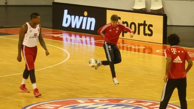 Bayern star Thomas Muller demonstrates he's a dab hand on the basketball court.