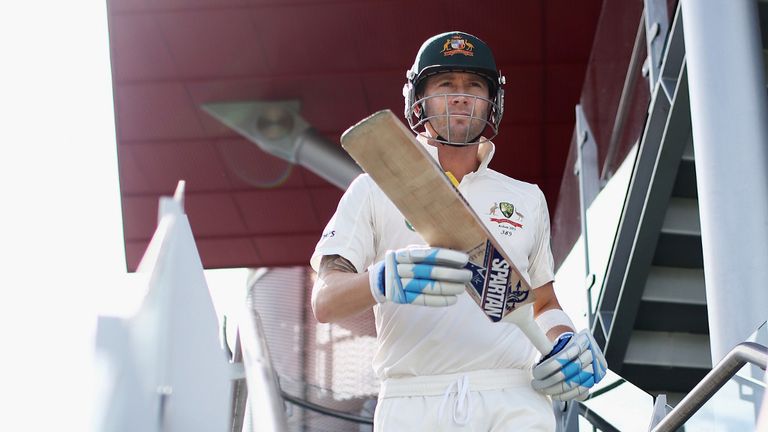 Image: Michael Clarke cut a determined figure at the start of play. -