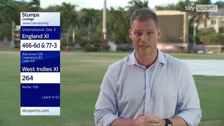 The last act of the day saw Zak Crawley lbw for 35 to low bounce, with England 279 ahead on 77-3.