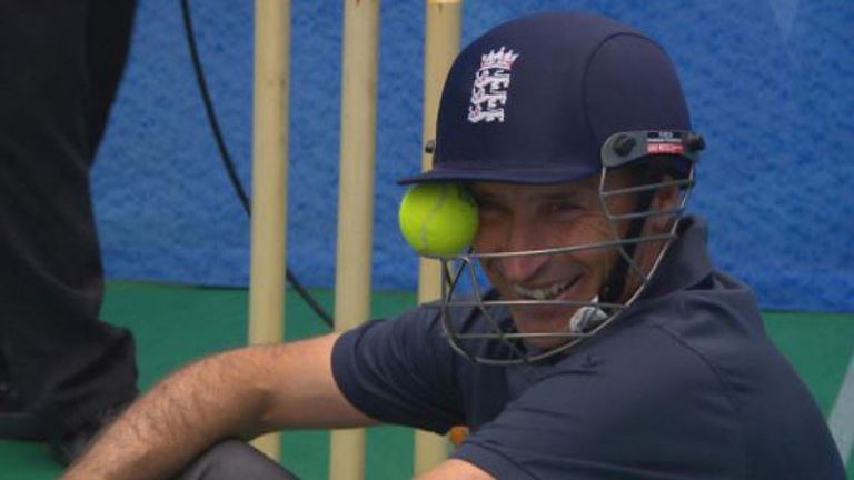Nasser's catching hasn't always been up to scratch - letting him down on previous Sky demonstrations - but it was safe as houses as he pouched a new Guinness World Record for the highest catch of a cricket ball.