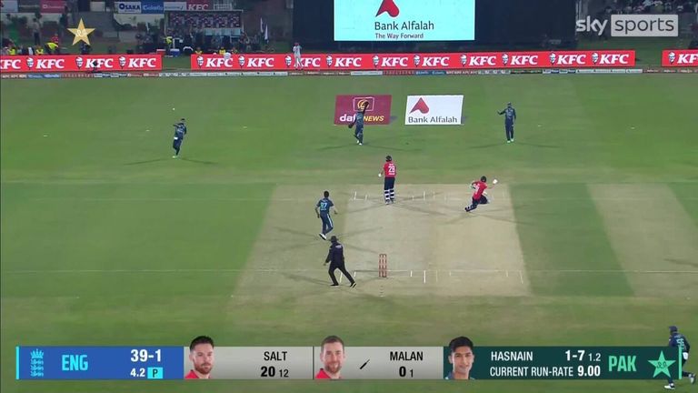 Hales was pinned lbw by Mohammad Hasnain after he and Salt had picked up 39 runs combined across the first four overs, with Salt then run out two deliveries later after a dreadful mix-up with Malan.