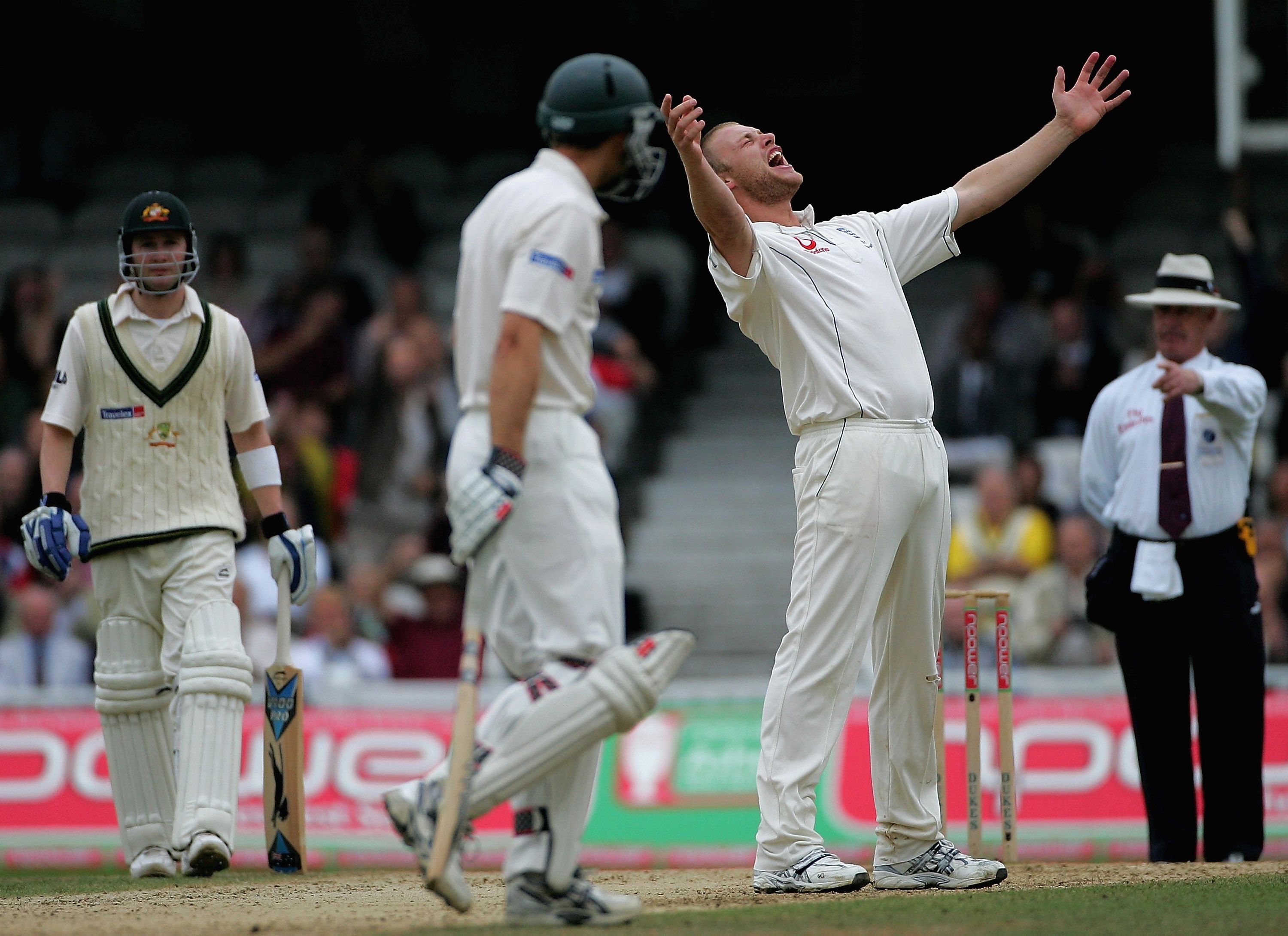 England continued to chip away at one end, Harmison rather fortuitously picking up Damien Martyn lbw as a thick inside edge went undetected and Flintoff – as was becoming habitual over the series – claiming the key wicket of Adam Gilchrist, but Ponting was immovable at the other.