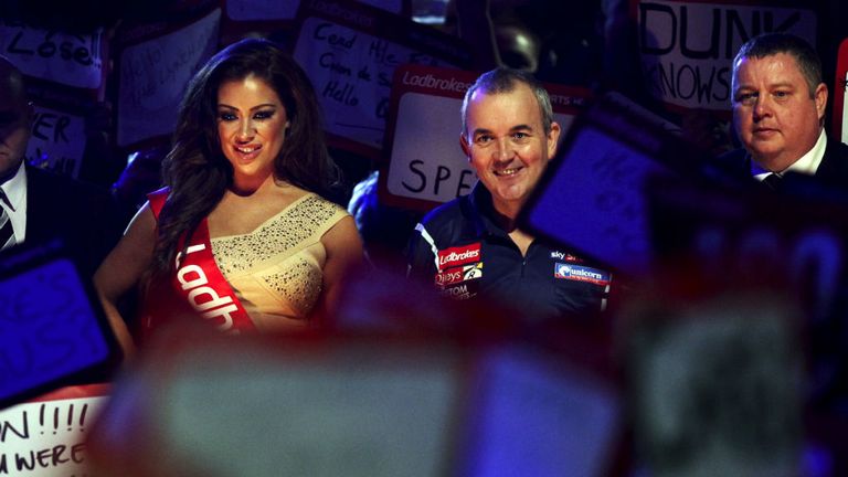 Image: Phil Taylor makes his way to the stage ahead of the eagerly-anticipated final against Michael van Gerwen... -
