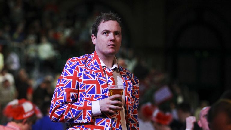 Image: A spectator pins his colours to the mast at Alexandra Palace -