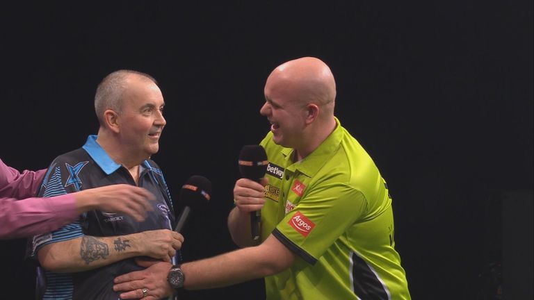 Van Gerwen and Taylor played out a dramatic 6-6 draw on night seven and the pair then shared a lively post-match interview at the SSE Hydro in Glasgow.