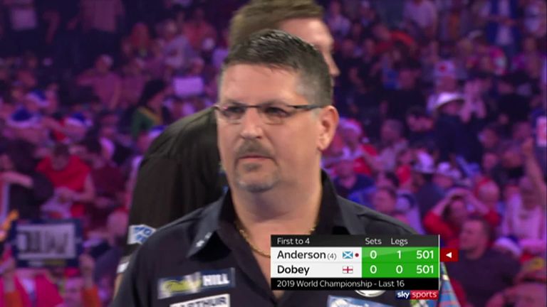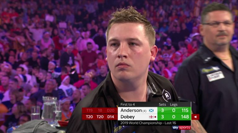 Anderson had started with a brilliant 123 check-out for a 12-dart break of throw but Dobey responded in style, taking the first set before coming from a leg down in the second to reel off three legs in succession.