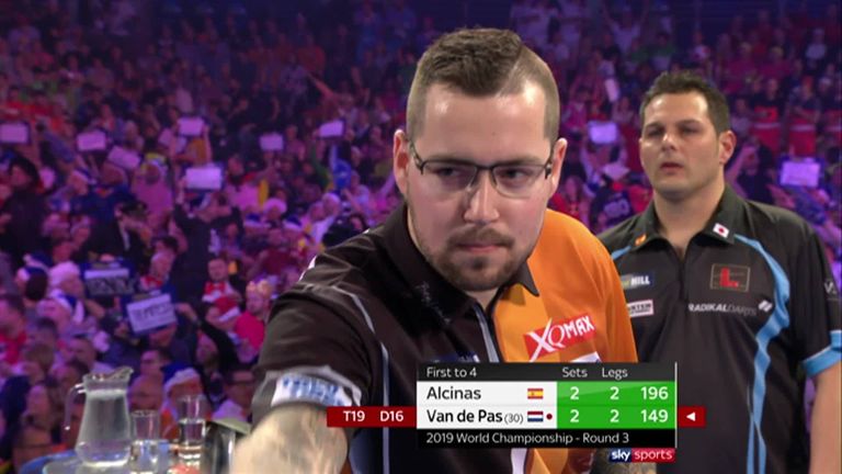 This time Alcinas had no answer, allowing Van de Pas to pin the double required and reach the last 16 where he will face Brendan Dolan.