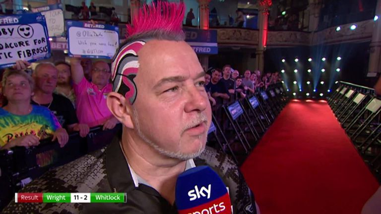 Whitlock opened his account in leg six, but Wright responded by reeling off four straight legs in 14, 15, 15 and 13 darts to continue the procession.