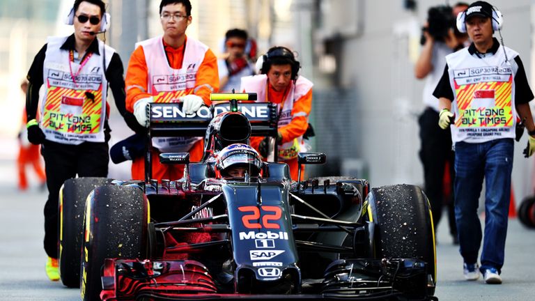 Despite his McLaren car breaking down in the opening minutes, requiring a push back to the pitlane from the obliging Singapore stewards, Jenson Button returned to finish 16th, five places behind team-mate Fernando Alonso.