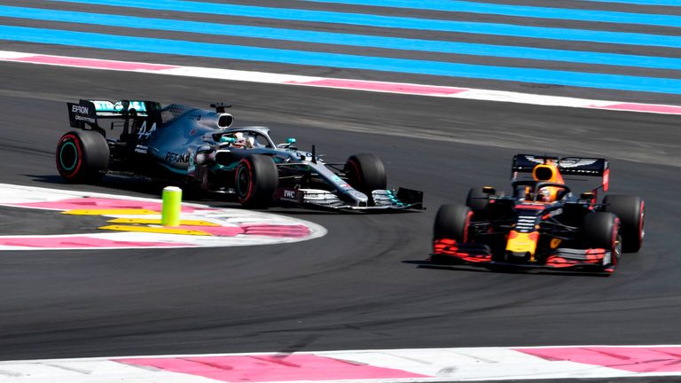 On a timed lap, the Red Bull went round the outside of the recovering Mercedes, but then Verstappen himself ran off the circuit after losing grip.