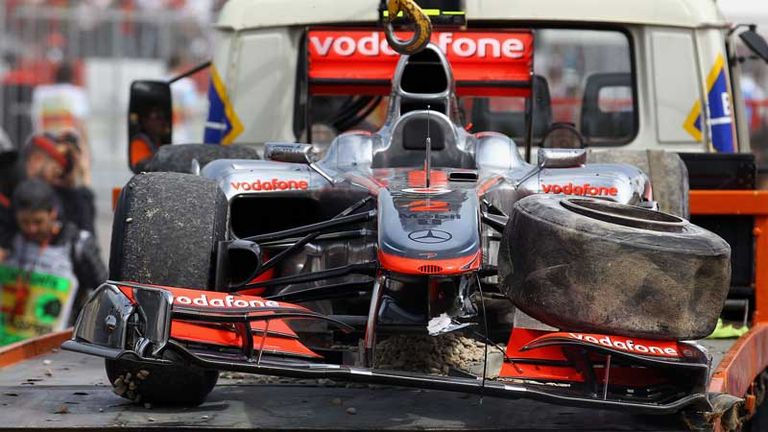 Hamilton was cruising to a second-place finish in Barcelona when his left-front tyre suddenly deflated and sent him into the barriers on the penultimate lap.