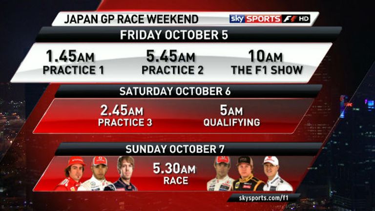 Sky Sports F1's Japanese GP schedule