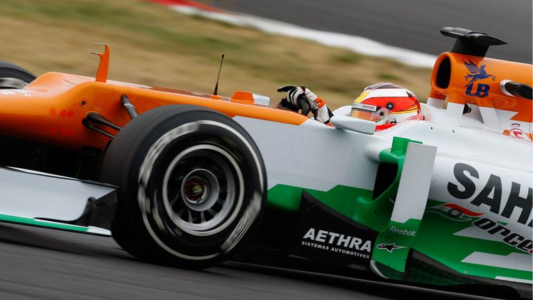 French driver spent day two in the Force India as Michael Schumacher arrived to inspect Mercedes' updates