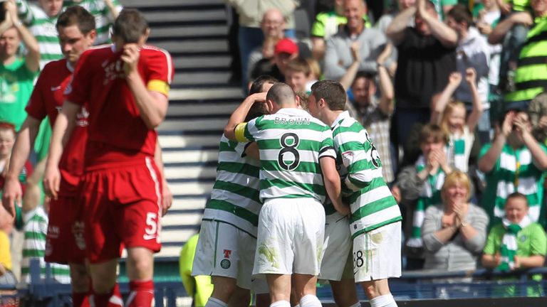 Dons defender Andrew Considine handed the initiative to Neil Lennon's side in the 18th minute when he was sent off by referee William Collum for fouling Gary Hooper in the box although Jamie Langfield saved Anthony Stokes' penalty. The Pittodrie men held out until the break but the numerical disadvantage took its toll in the second half as goals from Charlie Mulgrew, Joe Ledley, Kris Commons, with a spot kick, and Shaun Maloney, sealed a comfortable and expected win for the Parkhead side. The Hoops' showpiece game against Motherwell at the national stadium on May 21 will be the first time the two clubs have met in the Scottish Cup final for 60 years and Celtic will be as strongly fancied then as they were against the Dons, whose form against them this season has been dismal. Aberdeen went in to the game having lost 17 goals to the Hoops in four previous games this term, including a 4-1 defeat in the semi-final of the Co-operative Insurance Cup at the end of January. Lennon had brought back Stokes and Gary Hooper after leaving them out against St Johnstone in midweek but the former had a wretched first half, wasting two good chances before the penalty miss. In the fifth minute a wonderful Commons cross from the left was met by Stokes but the former Sunderland striker glanced his header wide of the far post. Stokes had an equally good chance in the 13th minute when a long Mark Wilson free-kick saw him race past a sleeping Dons defence but his drive from 12 yards was blocked by Langfield at the expense of a corner, which came to nothing. However, in the 18th minute, after Considine had been sent off for tripping Hooper in the box after he ran onto a Scott Brown pass, Stokes squandered an even better opportunity from the spot. The Irishman drove his penalty to Langfield's right but the former Dundee keeper got down to block before Aberdeen skipper Zander Diamond forced the rebound behind for a corner which, again, the Dons survived. Coincidentally, Langfield had saved a Stokes penalty after Considine had been sent off in the second minute when the two sides met at Pittodrie in the Clydesdale Bank Premier League at the start of February. Langfield was proving to be Stokes' nemesis. The keeper saved again from the Celtic striker after he finished off a breakaway by firing in from the edge of the box. The Granite City men were primarily concerned with their defensive duties but had their first chance in the 27th minute when Rob Milsom's floated cross found Chris Maguire 14 yards out but his header lacked the power to trouble Fraser Forster. The rest of the first 45 minutes saw Celtic struggle to get past a solid red rearguard. And it looked like being a long second half for the Dons as Langfield again had to come to the rescue less than two minutes after the restart. Stokes and Hooper combined brilliantly at the edge of the Aberdeen box but the Englishman's close-range shot was blocked by the Dons keeper. However, all Langfield's good work was undone in the 49th minute. He looked at fault when Celtic took the lead through Mulgrew. After Milsom was booked for a foul on Beram Kayal 35 yards out, the former Dons defender knocked the free-kick into the box and it evaded everyone and caught Langfield off guard as it sped in at the far post. In the 56th minute Maguire had the ball in the Celtic net but was ruled offside and a minute later Celtic confirmed their final appearance when Ledley latched onto a Stokes cross to send a shot from 12 yards past Langfield and into the corner of the net. Aberdeen were down and out. In the 62nd minute defender Derek Young conceded a penalty when he brought down Stokes almost on the byline and this time Commons sent Langfield the wrong way from the spot. The former Derby player then clipped the ball over the bar from just six yards after being set up by Stokes. Then, Langfield saved at the feet of Hooper who had been sent clear with a clever pass from Celtic substitute Maloney, who had replaced Ledley. But as Aberdeen tried to stem the tide, Maloney got himself on the scoresheet in the 83rd minute he converted a Wilson pass from almost on the goal-line and the Dons' misery was complete.