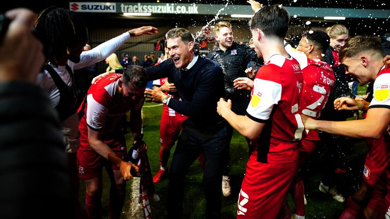 Exeter boss Matt Taylor: "It was an incredible night for the club. It was a strange game and to fall behind to a freakish goal in that manner - and then score a deflected one ourselves - summed up the type of game it was really. We just had to grind out a performance that kept level in relation to the context of the game and fortunately, that chance has fallen to MJ, our captain, our academy product, a constant threat in terms of his goals and he took it so well and we saw the game out.