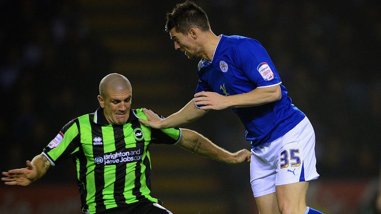 Andy King stabbed home the only goal of the game in the 10th minute, but they had goalkeeper Kasper Schmeichel to thank for preserving the points as he denied Ashley Barnes from the penalty spot. Leicester, who had moved to the summit on goal difference following a 1-1 draw at Birmingham on Saturday, named an unchanged starting line-up. Brighton, who went into the game on the back of a four-match winless run, made two changes from the side beaten at home by Middlesbrough last weekend. Will Buckley replaced David Lopez and Gary Dicker came in for Dean Hammond. Leicester started brightly, with Martyn Waghorn's skidding 30-yard free-kick forcing goalkeeper Tomasz Kuszczak into an early save. The Foxes took the lead after a spell of early pressure. Some fine work from David Nugent down the left saw him beat Liam Bridcutt and cut inside before laying the ball to King. King's initial shot was blocked by Kuszczak but the ball rebounded kindly to him and the midfielder stabbed home from close in. The home side were rampant and almost added a second shortly afterwards when Ritchie De Laet broke away and crossed into the path of Waghorn but he could not keep his shot down. Brighton responded through a Bridcutt free-kick which was pushed wide by Schmeichel, with Barnes heading over from the resulting corner. But Leicester were quickly back on the attack as Anthony Knockaert neatly controlled a pass from Waghorn and drove in a shot which was palmed away by the keeper. The Seagulls, who had scored just one goal in their previous four matches, were dominating possession as the first half drew to a close but struggled for an end product as Buckley's volley flew well wide. Kuszczak pulled off a superb save to keep out Nugent's curling effort at the start of the second half, but from the quick break, Brighton were awarded a penalty. Zak Whitbread was adjudged to have fouled Buckley, but Brighton's profligacy continued as Barnes' penalty was saved low by Schmeichel. De Laet left the action through injury shortly afterwards with Liam Moore coming on, while Nugent made way for Jamie Vardy moments later. And after Vardy had glanced a header wide from Lloyd Dyer's cross, Foxes manager Nigel Pearson made his third change, with Ben Marshall replacing Waghorn. Craig Mackail-Smith, who had been quiet, was inches away from connecting with a cross from Bruno Saltor, while at the other end Marshall had Kuszczak scrambling to keep out a low drive. Barnes had the chance to make amends for his penalty miss at the death but he fired wide and the Foxes held on.