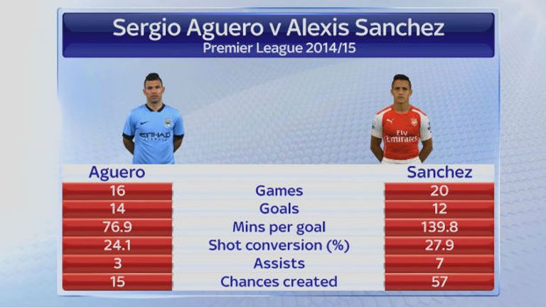 Alan Smith: What you’d say about Sanchez is that he’s more versatile. He plays on the left, he plays on the right and he’s played through the middle for Arsenal. You wouldn’t want to see Aguero on the flanks, you’d prefer him in the width of the penalty area. So Sanchez can play in three positions.