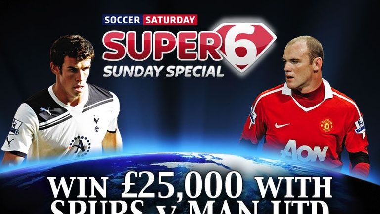Super 6 are giving players a chance to land £25,000 by predicting the result in the Tottenham v Manchester United clash.