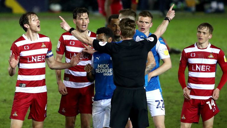 Peterborough blew a chance to secure promotion from League One as they were held 2-2 by Doncaster; Lincoln close on play-offs after 1-0 win at Shrewsbury; Blackpool beat Sunderland; Cheltenham promoted from League Two; Grimsby relegated.