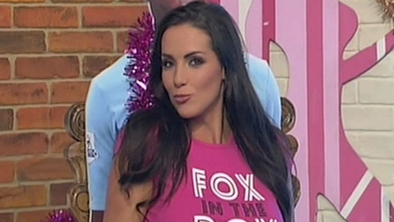 Stunning model Katie Green was strutting her stuff in the Soccer AM studios on Boxing Day.