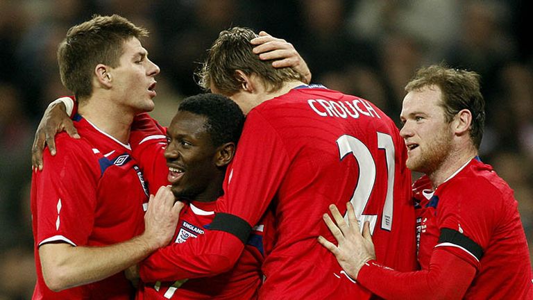 James (Portsmouth), Green (West Ham), Carson (West Brom); Brown (Manchester United), Johnson (Portsmouth), Terry (Chelsea), Ferdinand (Manchester United), Lescott (Everton), Upson (West Ham), A Cole (Chelsea), Bridge (Chelsea); Beckham (Los Angeles Galaxy), Walcott (Arsenal), Barry (Aston Villa), Jenas (Tottenham), Lampard (Chelsea), Gerrard (Liverpool), Downing (Middlesbrough), Wright-Phillips (Manchester City); Heskey (Wigan), Crouch (Portsmouth), Rooney (Manchester United), Defoe (Portsmouth)