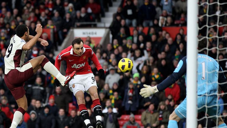 The Red Devils made the perfect start at Old Trafford, with Ryan Giggs forging forward and feeding Wayne Rooney and the striker's lifted cross was headed home by Berbatov at the far post.