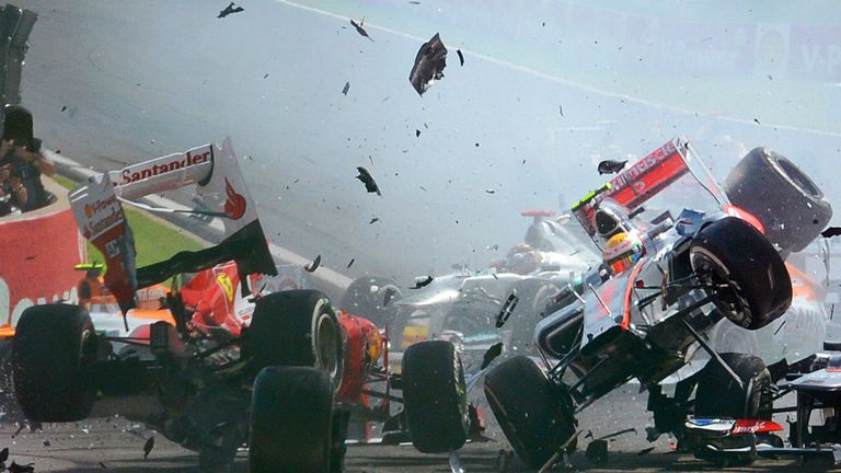 Image: In one the year's most action-packed races, Lewis Hamilton's battle with Pastor Maldonado ended in disaster. -