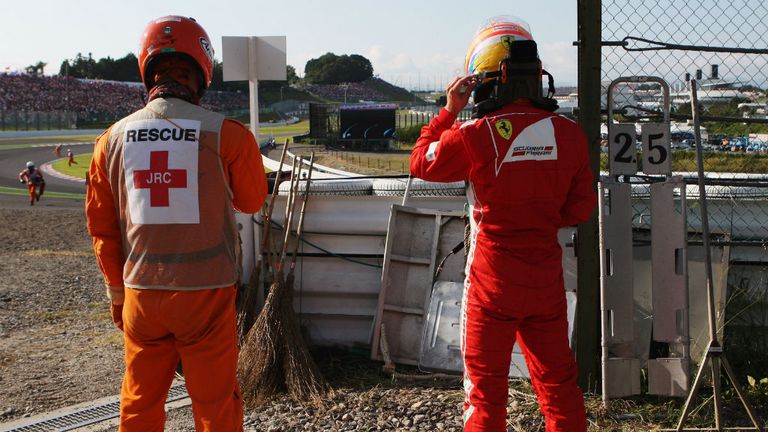 Image: Meanwhile, after a first-lap crash, Fernando Alonso was forced to watch his points-lead evaporate/ -