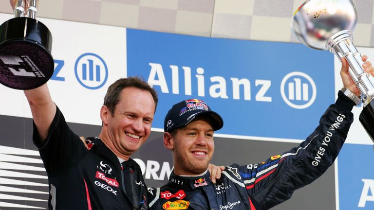 Image: ...and there was another double podium in India as Sebastian Vettel made it four in a row -
