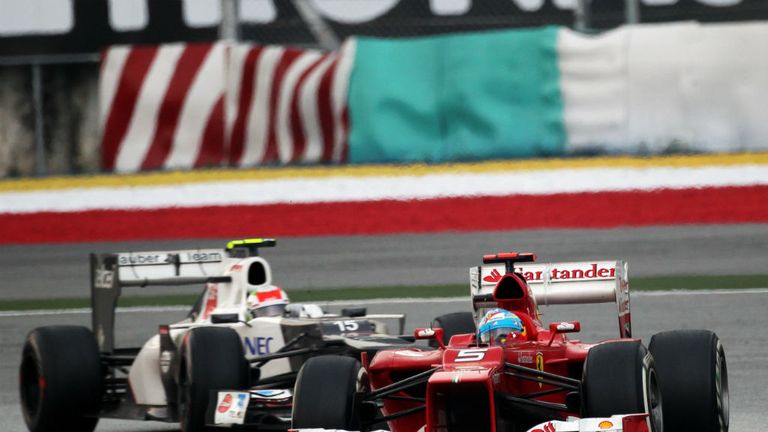 Image: The emerging talent of Sergio Perez hunted down Alonso in the closing stages of the race before Sauber settled for second place. -