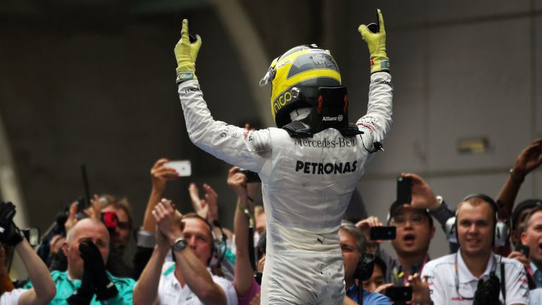 Image: Mercedes driver Nico Rosberg claimed his first win in F1 at the third race of the season - the Chinese GP. -
