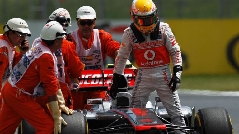 Image: In one of the defining moments of the year, Lewis Hamilton ran out of fuel on his in-lap in Spain after claiming pole. He was sent to the back of the grid. -