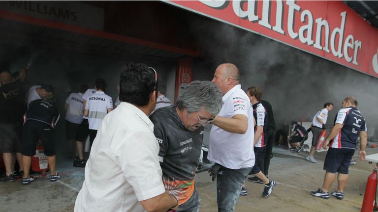 Image: But Williams' joy at their first win in almost a decade was cut short when a fire broke out in their garage. -