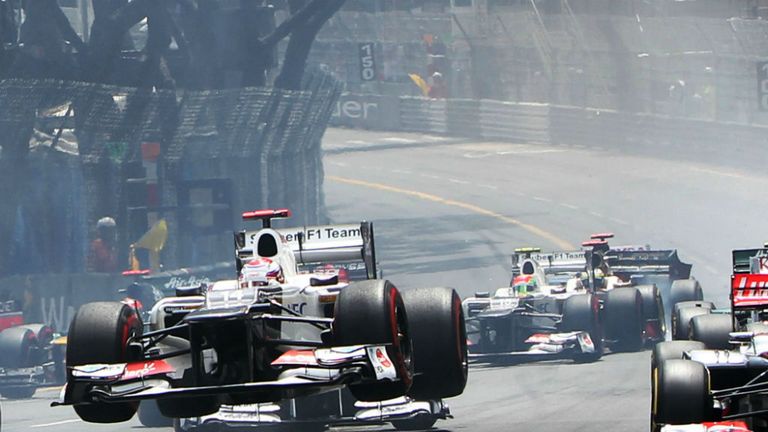 Image: Who says F1 cars can't jump? Kamui Kobayashi was flying at the start at Monte Carlo. -