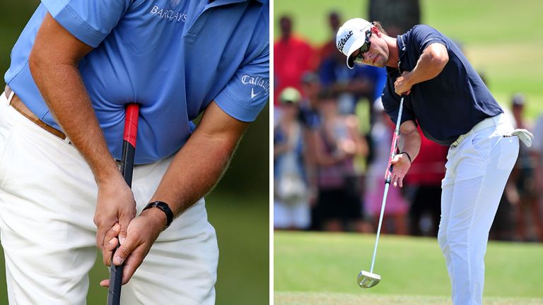 The controversy There is no objection to long putters per se. After all, Angel Cabrera won the 2009 Masters with a putter longer than standard. The problem is when these long putters are anchored against the golfer's body (something Cabrera didn't do). Anchoring a putter against the belly or sternum provides a third point of contact between golfer and club and that serves as a fulcrum for making a pendulum putting stroke. Many believe our hands should be the only connection to any golf club and anchoring provides an unfair advantage. Recent success In four of the last five weeks, long putters were used by the winner. Adam Scott, with his broomstick, captured the WGC-Bridgestone Invitational in early August before, the following week, Keegan Bradley became the first player to win a major using the anchored belly putter. Webb Simpson won the Wyndham Championship the week after and a fortnight later his belly putter helped him gain a second win, this one at the Deutsche Bank Championship. Should they be banned? The Gecko EuroPro Tour - a mini tour in Spain - has already decided to ban the long putter from all events. The Tour's director of golf Paul Netherton said: "With the anchoring of the putter into a player's midriff, we feel this gives a player an unfair advantage over the rest of the competitors in the field, which goes against the ethos and spirit of the game." What is the stance of golf's governing bodies? The R&A and USGA have so far declined to outlaw or regulate long putters. The Rules of Golf state that a putter cannot be shorter than 18 inches, but there's no maximum length. However there is a rule saying that equipment must maintain "traditional and customary" use which could give them leeway to change their current stance. The always reasonable USGA president Mike Davis said on the Golf Channel in April 2011 that the USGA and R&A had decided users tended to fall into two groups of players - "those that are afflicted with yips or something else that's not good, or people that have back problems." He asked: "Do we want to take clubs out of the hands of people who almost can't enjoy the game anymore?" However, which group would Webb Simpson and Keegan Bradley fall into? They're healthy young players without bad backs nor afflicted by the yips. If you can't beat 'em, join 'em Ernie Els was once an outspoken critic of the long putter. Back in 2004 he said: "I think they should be banned. Nerves and the skill of putting are part of the game. You know, take a tablet if you can't handle it." Well, seven years on and after a spell of huge frustration on the greens, Els has decided he can't handle it. The solution - a belly putter. And it wasn't lost on viewers when he holed a key putt with his lengthened blade at the 72nd hole in Boston to scrape into the next round of the playoffs. Some may call him a hypocrite. Others will be glad to see a great player like Els perhaps being given a new lease of life. What do the Sky Sports experts say? Rob Lee: "I don't think anything that's anchored should be part of the sport and I don't like them at all. Manufacturers have produced some wonderful golf clubs and it's helped to make the sport more accessible and enjoyable for amateurs. But the guys at the top of the game shouldn't get as much assistance. Much like 64 degree wedges, I think long putters should be banned. However, I think that horse has bolted and I'm afraid the sport could now be stuck with them." Ross McFarlane: "I'm not a great fan, I've got to be honest. I don't think that any golf club should be lodged into your body in any way, shape or form - you should be gripping it with your hands.However, a lot of the youngsters start with that style of putter instead of the ordinary length." Too late to ban? As Lee and McFarlane suggest, many feel the genie is out of the bottle and the long putter is now part of the culture. How do you tell a player who has grown up using a long putter that it's suddenly illegal? Mickelson made this very point last week: "If they were going to be banned, it should have happened 20-plus years ago," he said. "But now that it's been legal, I don't think you can make it retroactive. There have been guys that have been working with that putter for years if not decades. I just don't believe that it should even be a consideration." Was the long putter actually the key to the spate of recent wins? WGC-Bridgestone: Scott was ranked 4th in putting average but it also helped he came out top of the total driving stats and was second in ball-striking. USPGA: Bradley was 3rd in putting average but also second in greens in regulation. Wyndham: Simpson was second in the putting average stat but was also in the top five for total driving and ball striking. Deutsche bank: Simpson holed key putts at the finish and was ranked second in putting average. Clearly, putting played a key part in those wins but it's also worth noting that Scott, Bradley and Simpson (in the first of his wins) all topped the all-round rankings (a measure of eight different stats categories from driving to putting) during the week of their wins. In other words, good putting helped complete the picture. It wasn't the sole reason for their success.Cons as well as pros Phil Mickelson made big headlines last week when he put a long putter in his bag for the Deutsche Bank. "An outrage", said the purists but Lefty, like Els, had also started to miss short putts with his conventional putter. However, while the short ones went in, Mickelson's distance control on long putts and judgement on breaking putts looked way out of synch with the longer blade and he was ranked 41st in putting average.