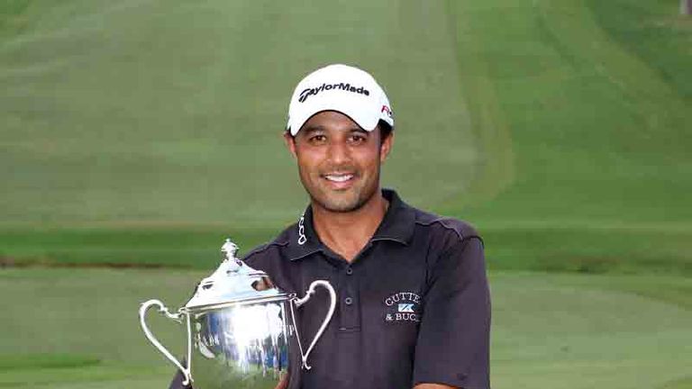 Arjun Atwal holed a six-foot putt on the final hole to clinch victory in the Wyndham Championship.