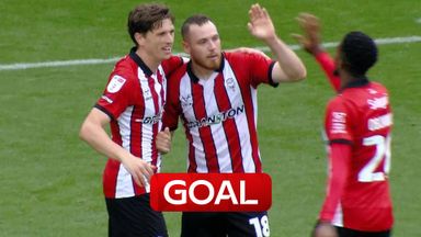 Ben House neatly slots home Lincoln City's THIRD goal against Luton Town.