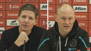 Oliver Glasner and Alex Neil react to Liam Roberts' red card for a foul on Jean-Philippe Mateta in Crystal Palace's FA Cup fifth round win against Millwall.