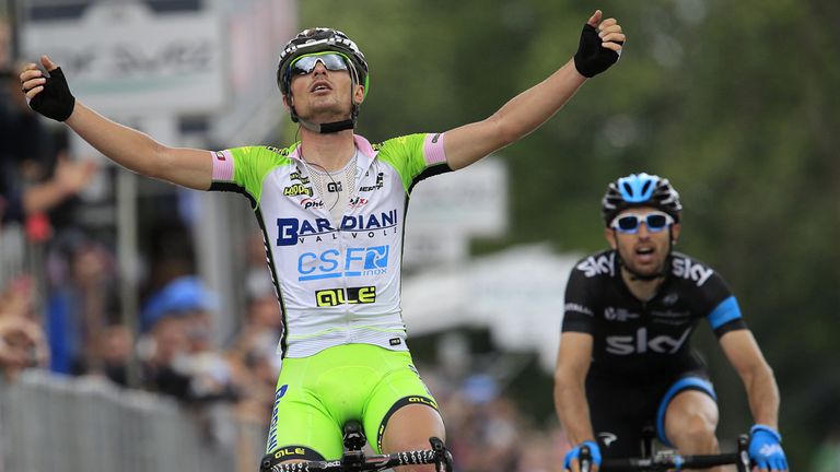 Hitting the cobbled finish, Cataldo sprinted for the line, pushing clear of Jarlinson Pantano (Colombia), but it was a fast-finishing Enrico Battaglin who powered through to take victory. The Bardiani-CSF rider overhauled his compatriot in the final 20 metres to ensure heartbreak for Cataldo despite an impressive ride.