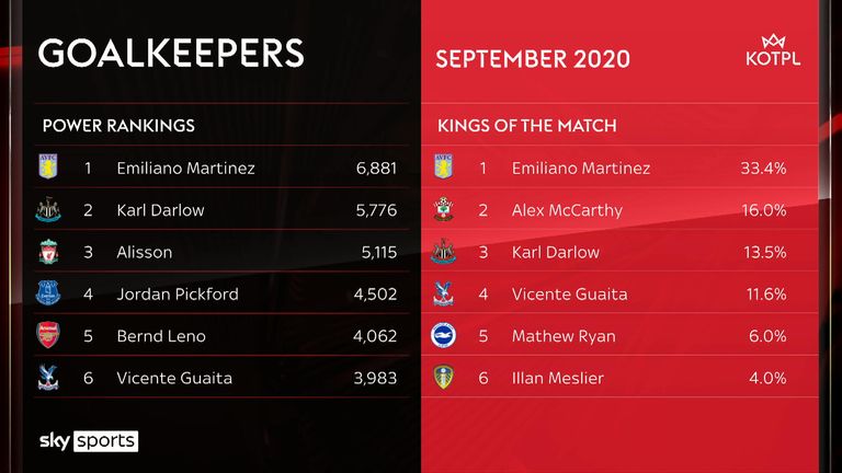 Emiliano Martinez was the unanimous choice, having impressed during the latter stages of last season for Arsenal as he stood in for the injured Bernd Leno - but signed for Aston Villa this summer after 10 years at the Emirates.