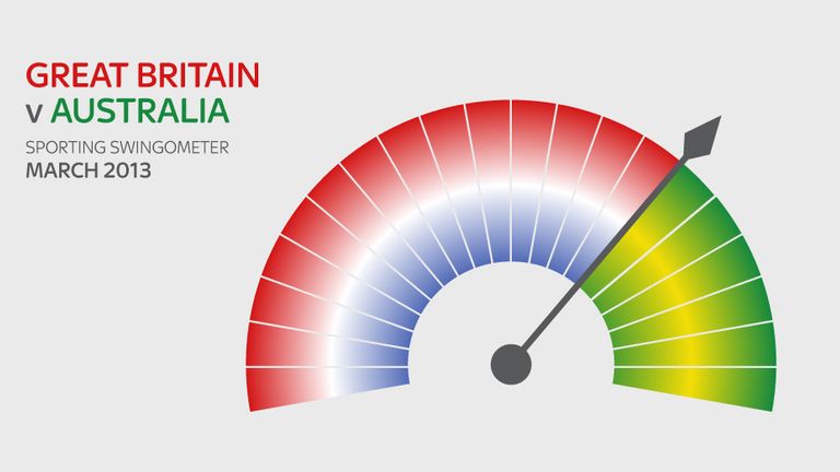 Every month the performances of Britain and Australia's sportsmen and women will move our 'swingometer' as we try and work out whose stock is highest.