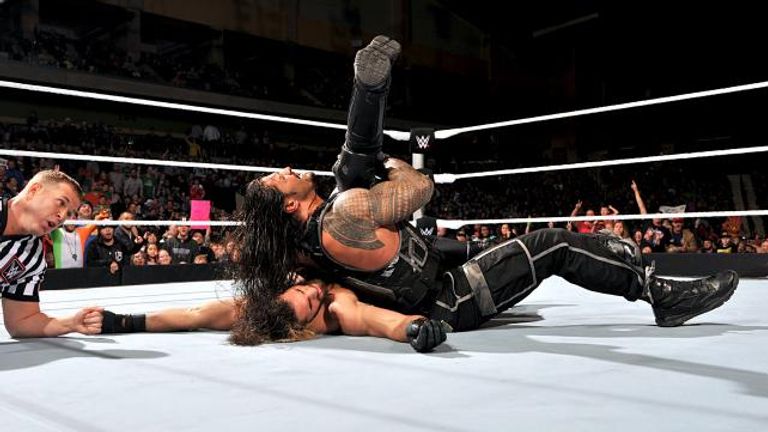 The ex-Shield powerhouse weakened The World’s Largest Athlete with his gut-busting move and then pinned Rollins after hitting The Aerialist with the same manoeuvre in Sioux City, Iowa.
