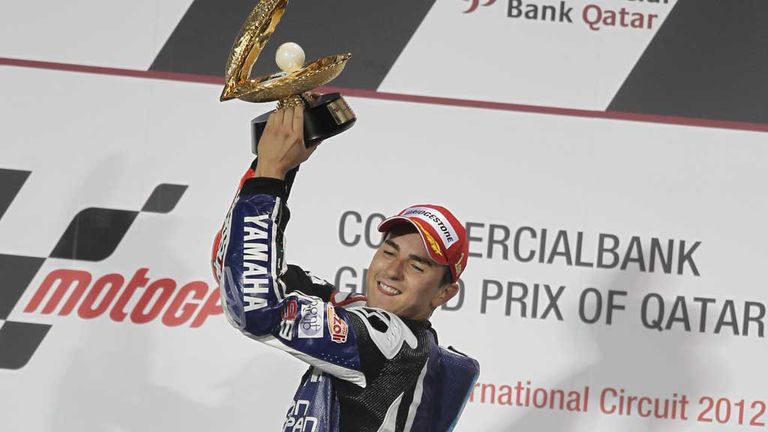 Jorge Lorenzo hunted down defending champion Casey Stoner to claim victory in the opening race of the new MotoGP season at Losail in Qatar. The Yamaha rider started from pole and led for the opening laps before Stoner's Honda powered past and soon opened up a comfortable advantage. But after establishing a cushion of around two seconds at the front, Stoner's bid fell apart in the closing laps as the Australian was caught and passed by Lorenzo and his own team-mate Dani Pedrosa. Stoner said after the race that he had been suffering from 'arm pump', a condition that causes muscular swelling in the arm as a consequence of gripping the handlebars. Lorenzo said: "I put everything I have into the track. Casey was very strong at the beginning, opened a gap. Lucky for us he dropped his pace. I'm very grateful to Yamaha. They did a big job this winter."
