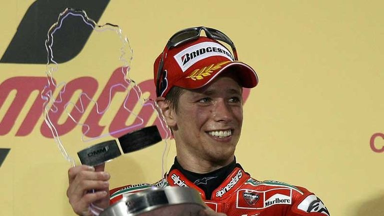 The season's curtain-raiser had been postponed after heavy wind and rain on Sunday but Stoner was undeterred as he completed his third victory at Losail International circuit, just outside Doha.