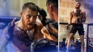 He then found some, reportedly full, cans of energy drink and began hurling those towards Diaz before UFC president Dana White called a halt to proceedings - the traditional head-to-head between the fighters predictably did not take place.