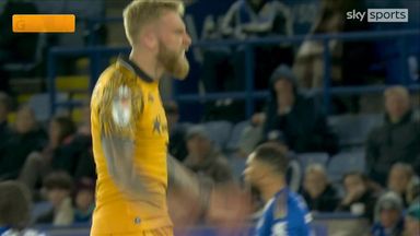 Liam Millar scores the opening goal against Leicester after Asmir Begovic's error.