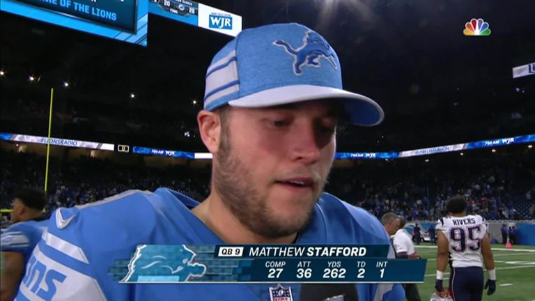 Patriots 0-10 Lions: Matthew Stafford four-yard touchdown pass to Kenny Golladay (Prater extra point good)