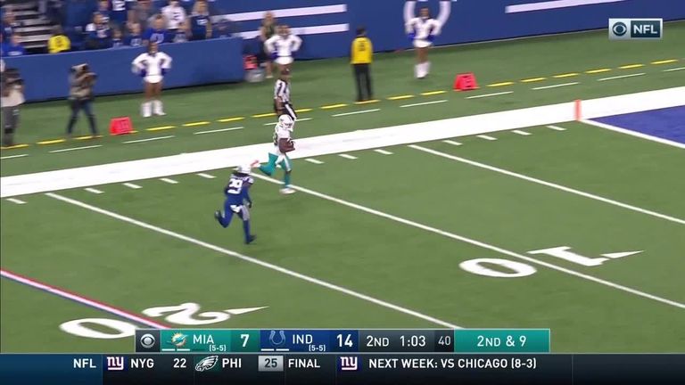 Leonte Carroo's managed to grab a touchdown with a 74-yard catch and run for the Miami Dolphins.